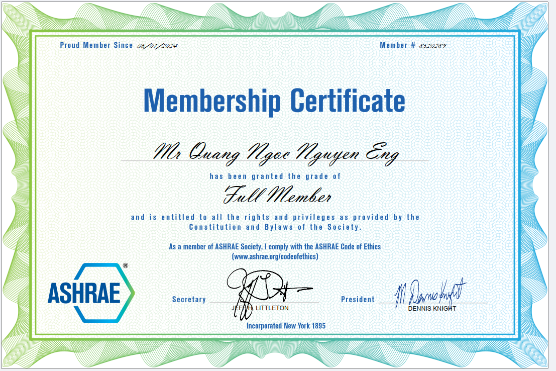 Thành viên chính thức của ASHRAE – Tổ chức tiêu chuẩn HVAC uy tín của Hoa Kỳ.
